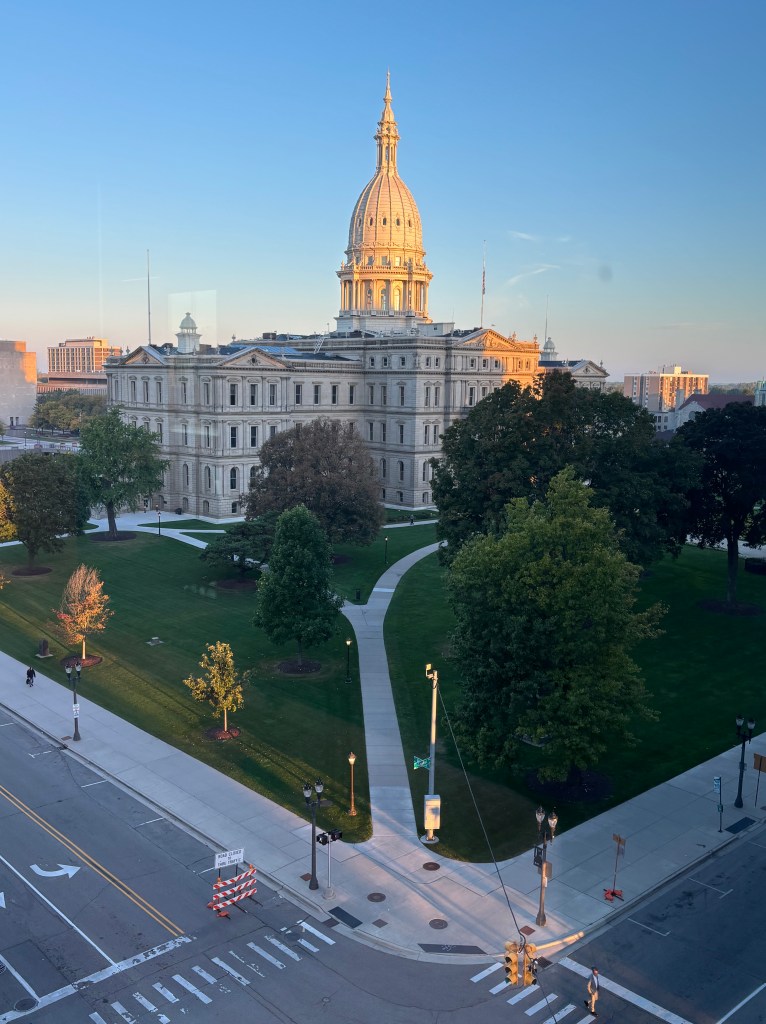 [Photo: Michigan State Capitol at sunrise — a place where history and advocacy meet]